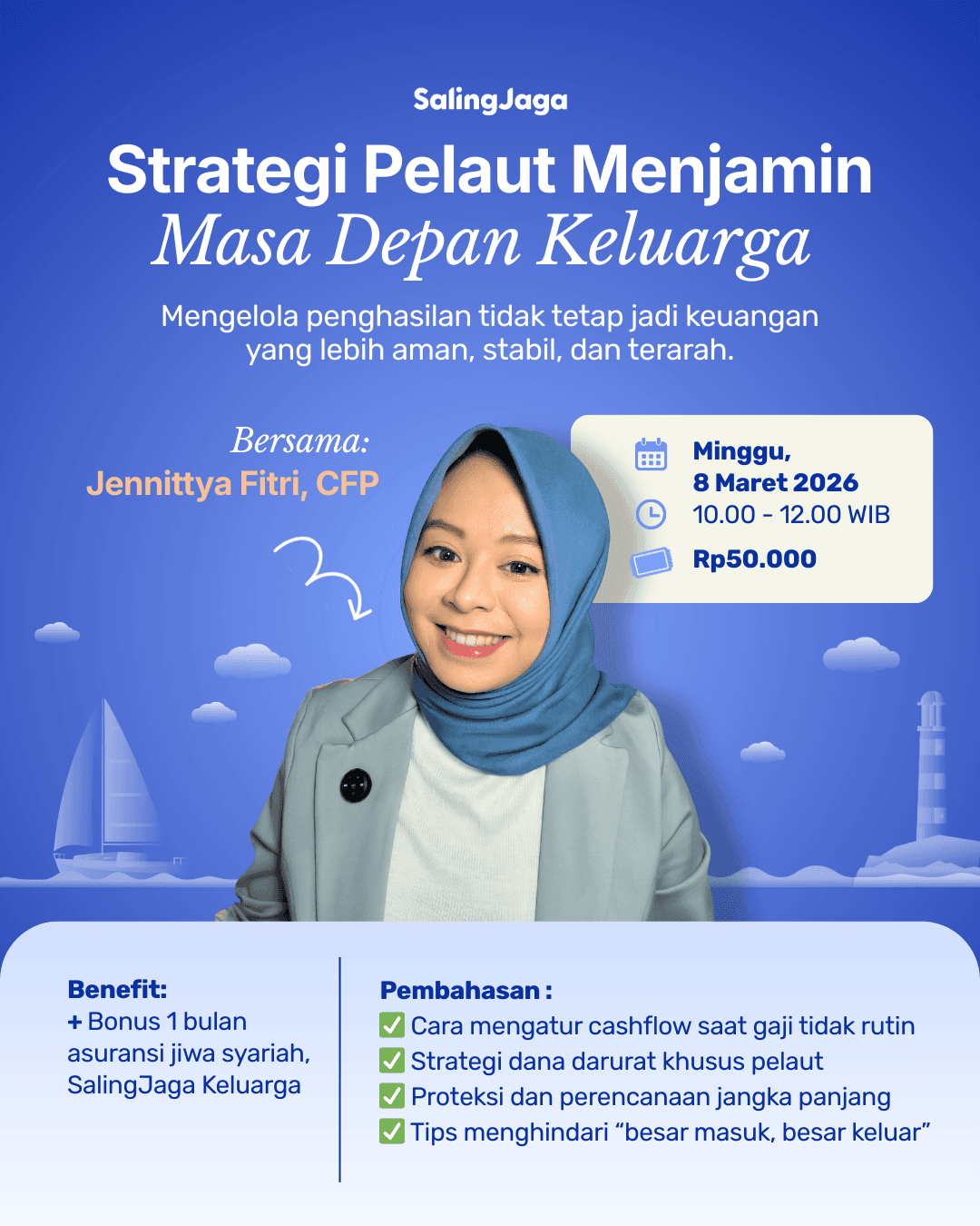 Melalui webinar ini, SalingJaga bersama Jennittya Fitri, CFP® mengajak kamu dan pasangan untuk memahami cara mengelola penghasilan yang tidak tetap menjadi keuangan keluarga yang lebih aman, stabil, dan terarah.